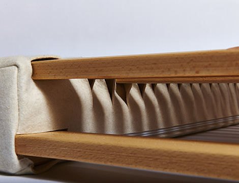 Material: Die Federkörper sind aus massivem Buchenholz. Sie sind in Naturkautschuk-Holmen mit reiner Schafschurwoll-Ummantelung beweglich gelagert.