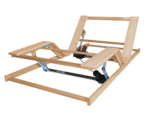 Der Verstellrahmen wird in das Bettgestell eingelegt und ist der tragende Teil des Schlafsystems. Es gibt ihn in verschiedenen metallfreien Varianten der Verstellbarkeit von Kopf- und/oder Fußteil und, nicht metallfrei, mit Motor.