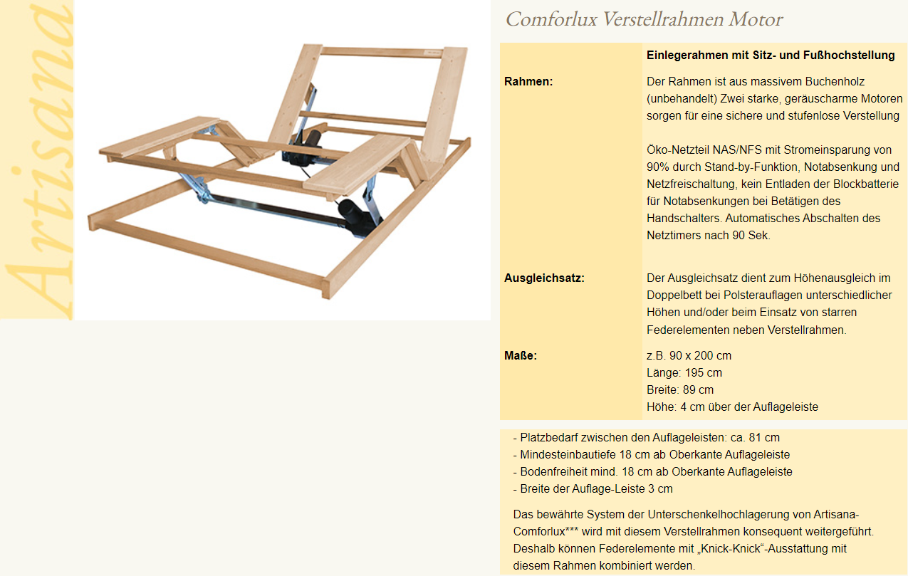 Downloads zu "Artisana Comfortlux Verstellrahmen"
