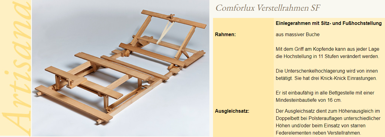 Produktinformationen "Artisana Comfortlux Verstellrahmen"