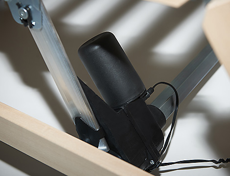 In der nicht metallfreien Variante als elektromotorisch verstellbarer Rahmen sorgen zwei starke, aber geräuscharme Niedervolt-Motoren mit Öko-Netzteil und Spannungsminimierung für eine sichere und stufenlose Verstellung. Durch die spezielle Knick-Knick-Einrastung des Artisana-Systems übertragen sich die Hochstellungen nahtlos auf das darauf liegenden Federlement.