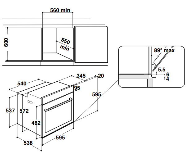 - Nischenmaße (HxBxT): 600x560x550 mm