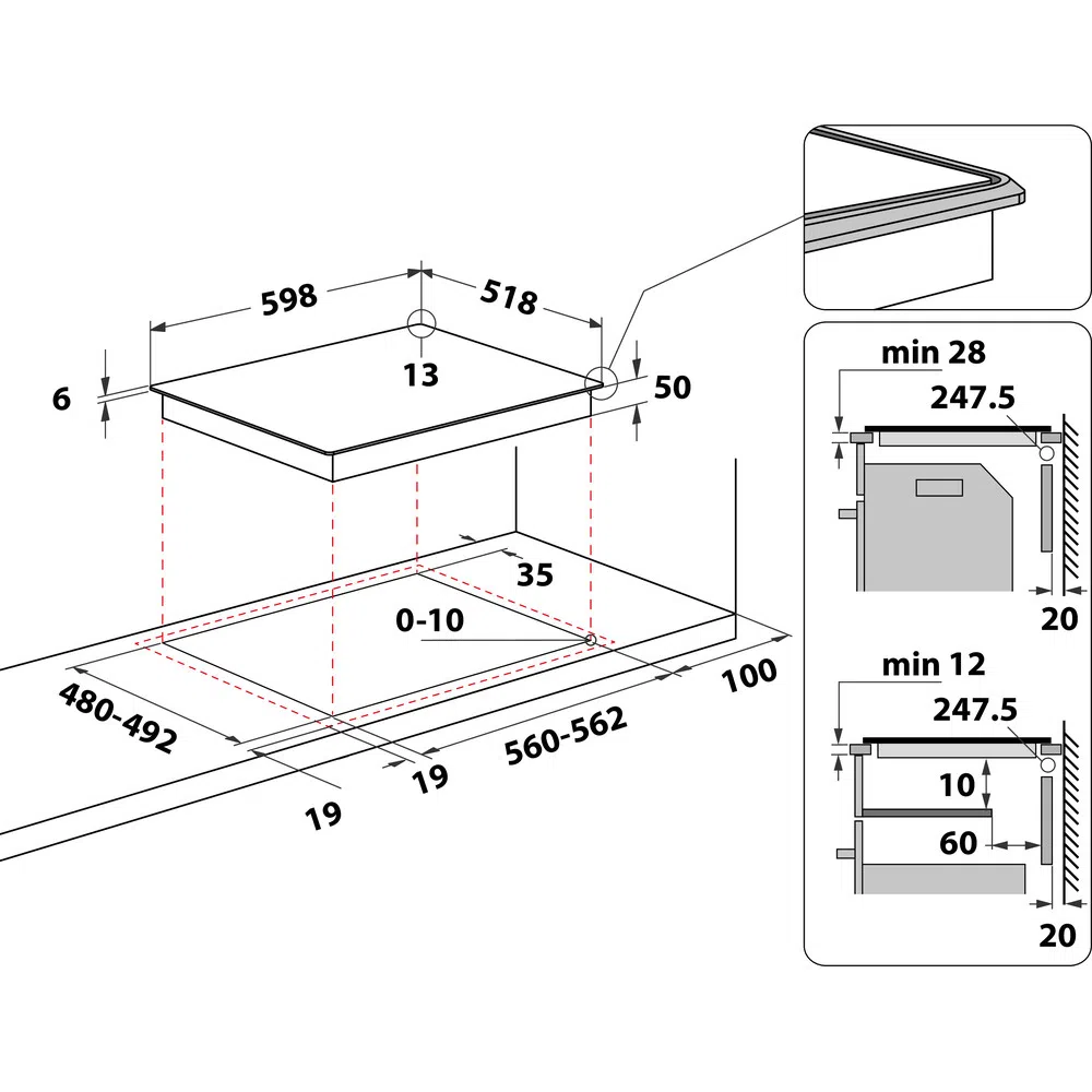 - Ausschnittmaße (B x T): 560 x 480 mm