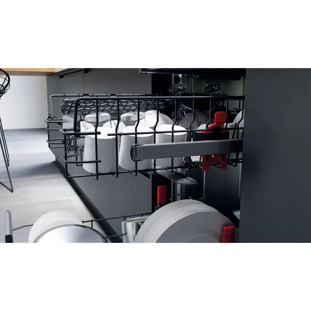 - 4 umklappbare Tellersegmente im Unterkorb