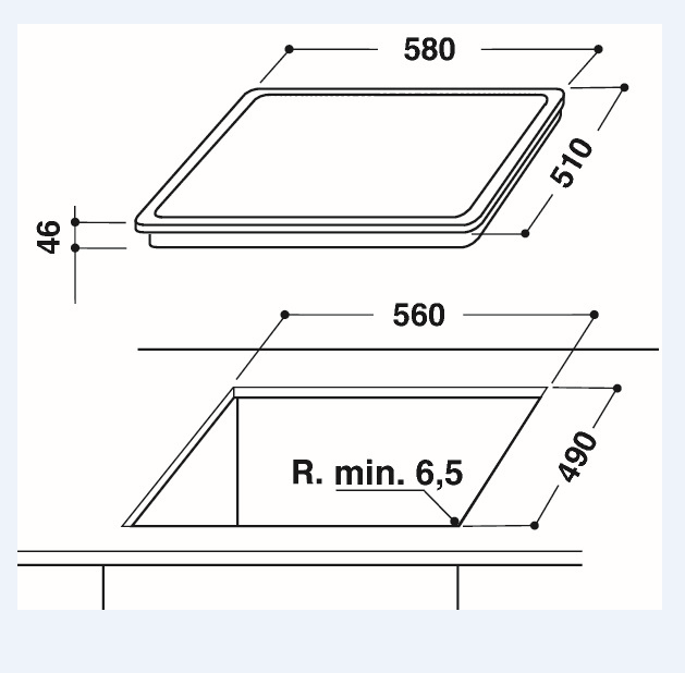 - Ausschnittmaße (B x T) 560 x 490 mm