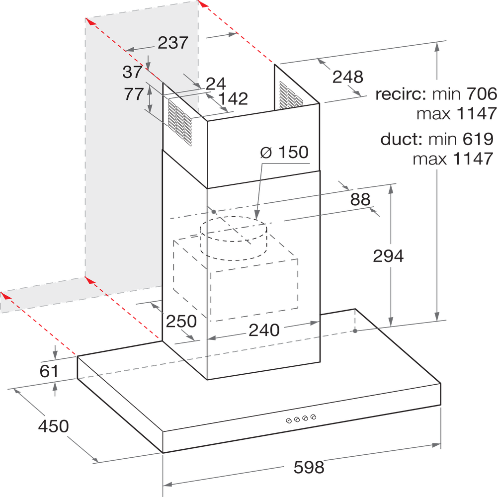 DBHBS 64 LM X - Dunstabzüge - Wandesse aus hochwertigem Edelstahl zur Montage direkt an die Wand - Steuerung über Leichtdrucktasten