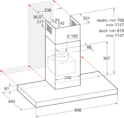 - Gegen Aufpreis: Aktivkohlefilter für den Umluftbetrieb AMC 027