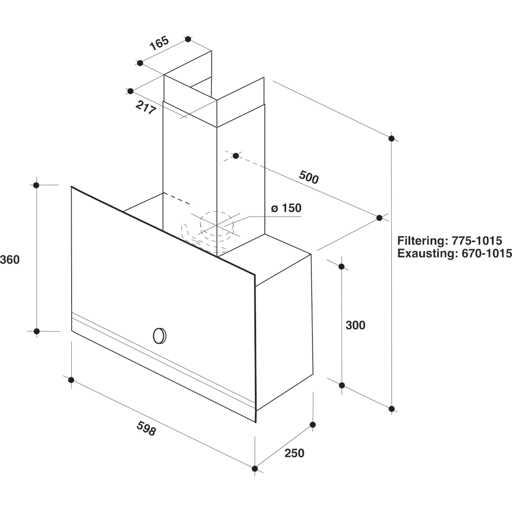 Gebläseleistung im Abluftbetrieb: max. Normalstufe 485 m³/h Betriebsgeräusch im Abluftbetrieb: min. 51 max. 65 dB/A Außenmaße (HxBxT): 775x598x250 mm Gesamte Gerätehöhe verstellbar von 775 bis 1015 mm Abluftstutzen Ø 150 mm Mindestabstand zum Elektrokochfeld 450 mm Mindestabstand zum Gaskochfeld 650 mm