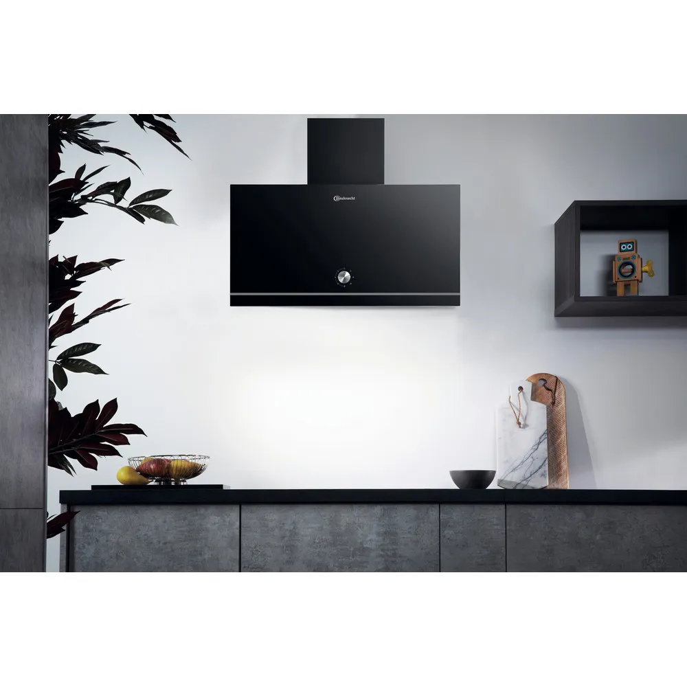 Wandesse aus hochwertigem schwarzem Glas zur Montage direkt an die Wand Dunkelgrauer Schacht Für Abluft- und Umluftbetrieb geeignet