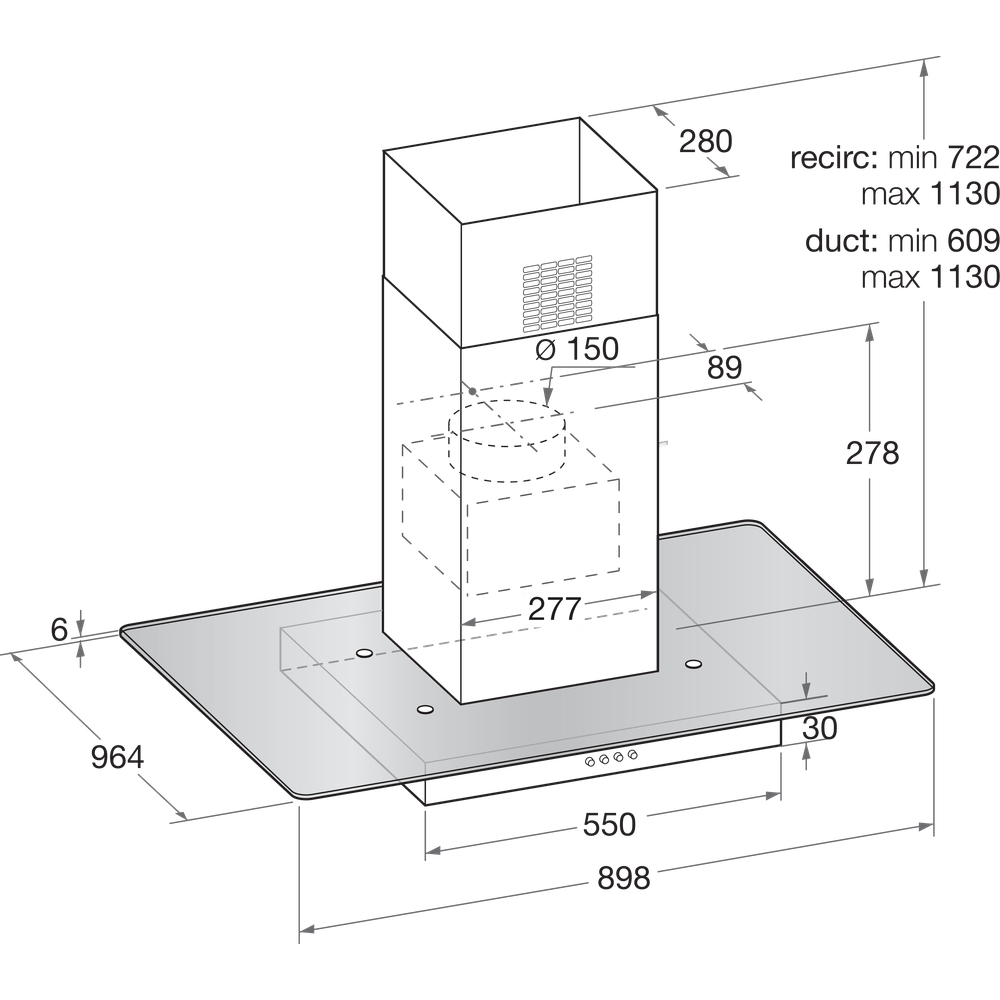 - Außenmaße (HxBxT): 1130x898x598 mm