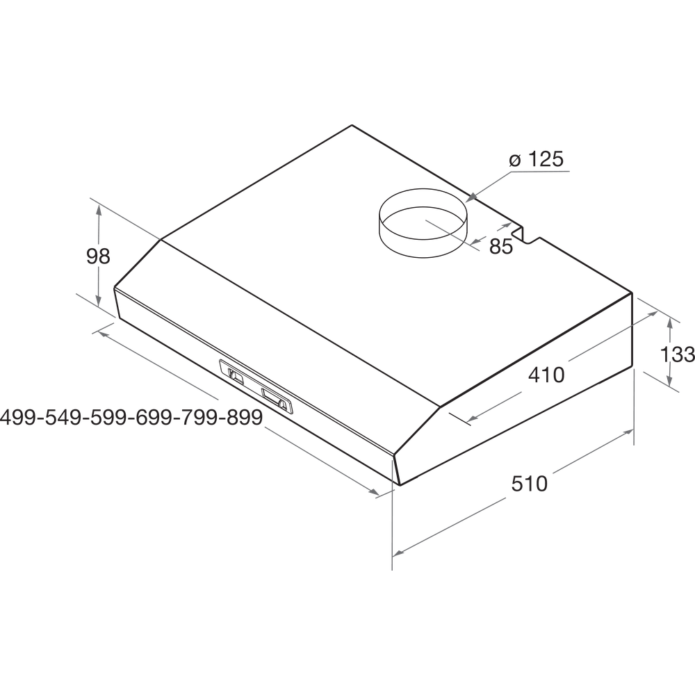 - Außenmaße (HxBxT): 133x598x510 mm