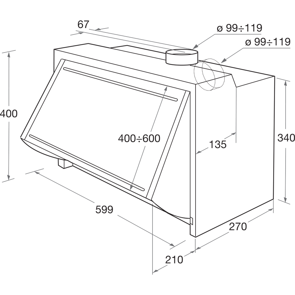 - Zwischenhaube, integrierbar in die Küchenzeile durch Montage einer Oberschranktür des jeweiligen Küchenprogramms