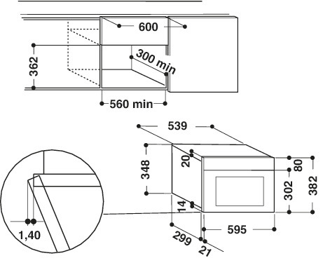 - Nischenmaße (H x B x T): 362 x 560 x 300 mm