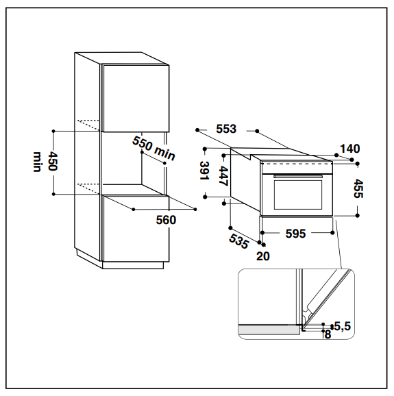 - Nischenmaße (HxBxT): 450x560x550 mm