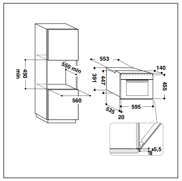 - Nischenmaße (HxBxT): 450x560x550 mm