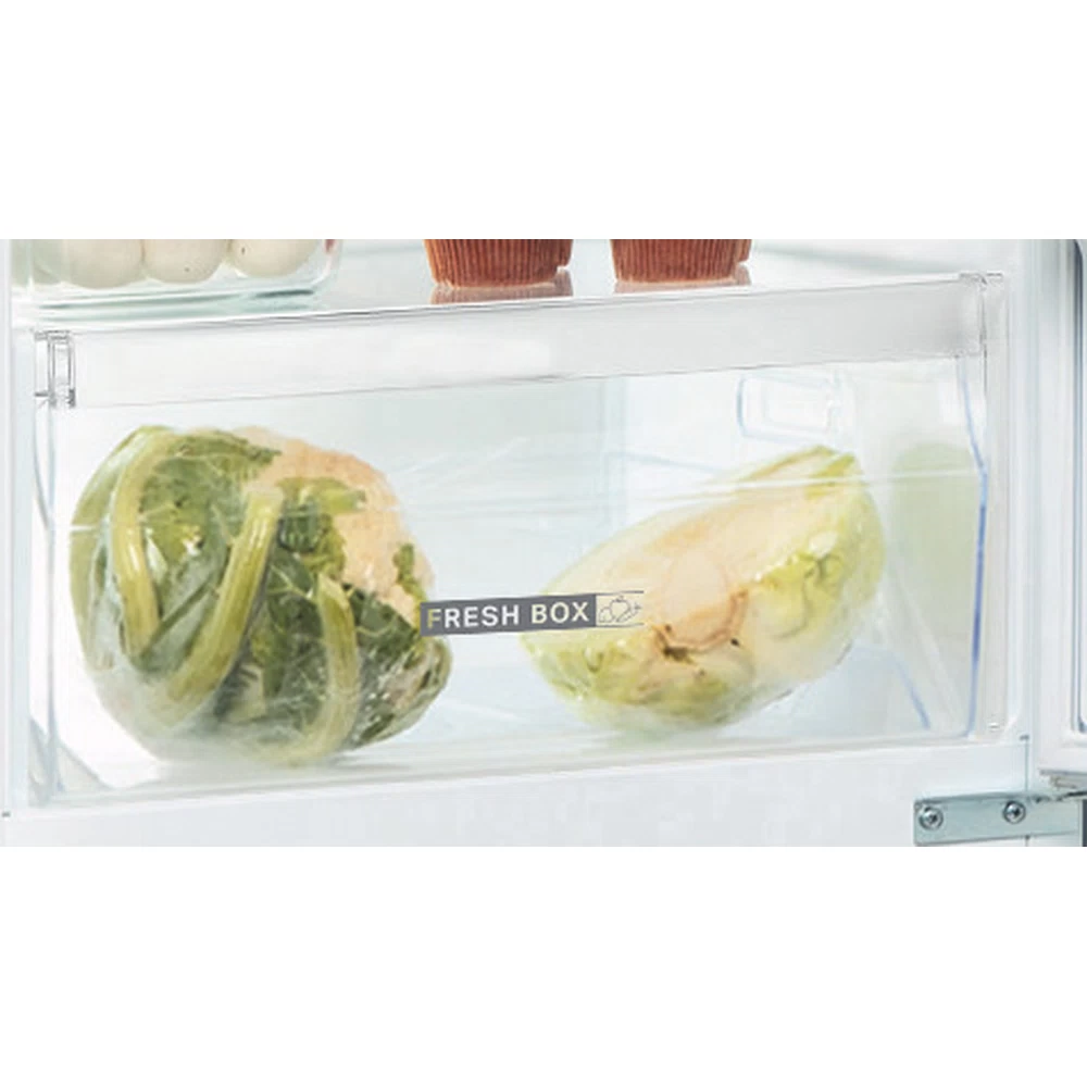 Sicherer Halt dank hochwertiger Flaschenhalterung LED-Licht bessere Ausleuchtung bei weniger Verbrauch Abtauautomatik im Kühlteil 4 Ablagen aus Sicherheitsglas, davon 3 höhenverstellbar 1 Obst- und Gemüseschublade 3 Türfächer