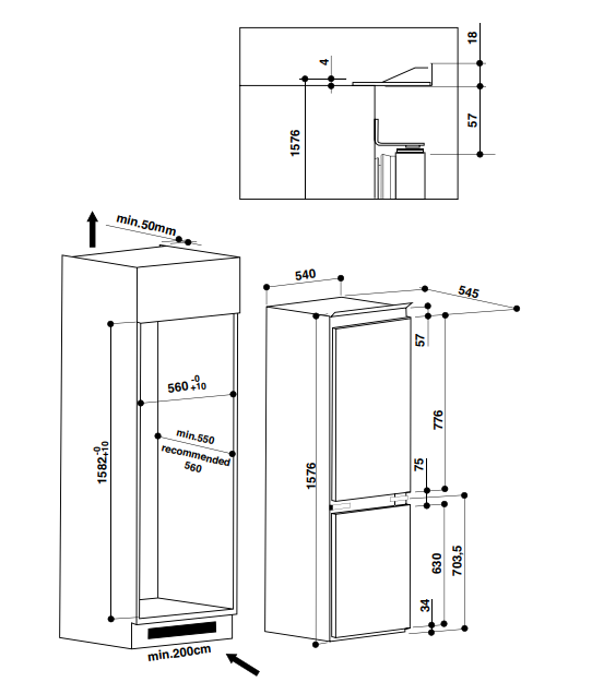 - Gerätemaße (HxBxT): 1576x540x545 mm