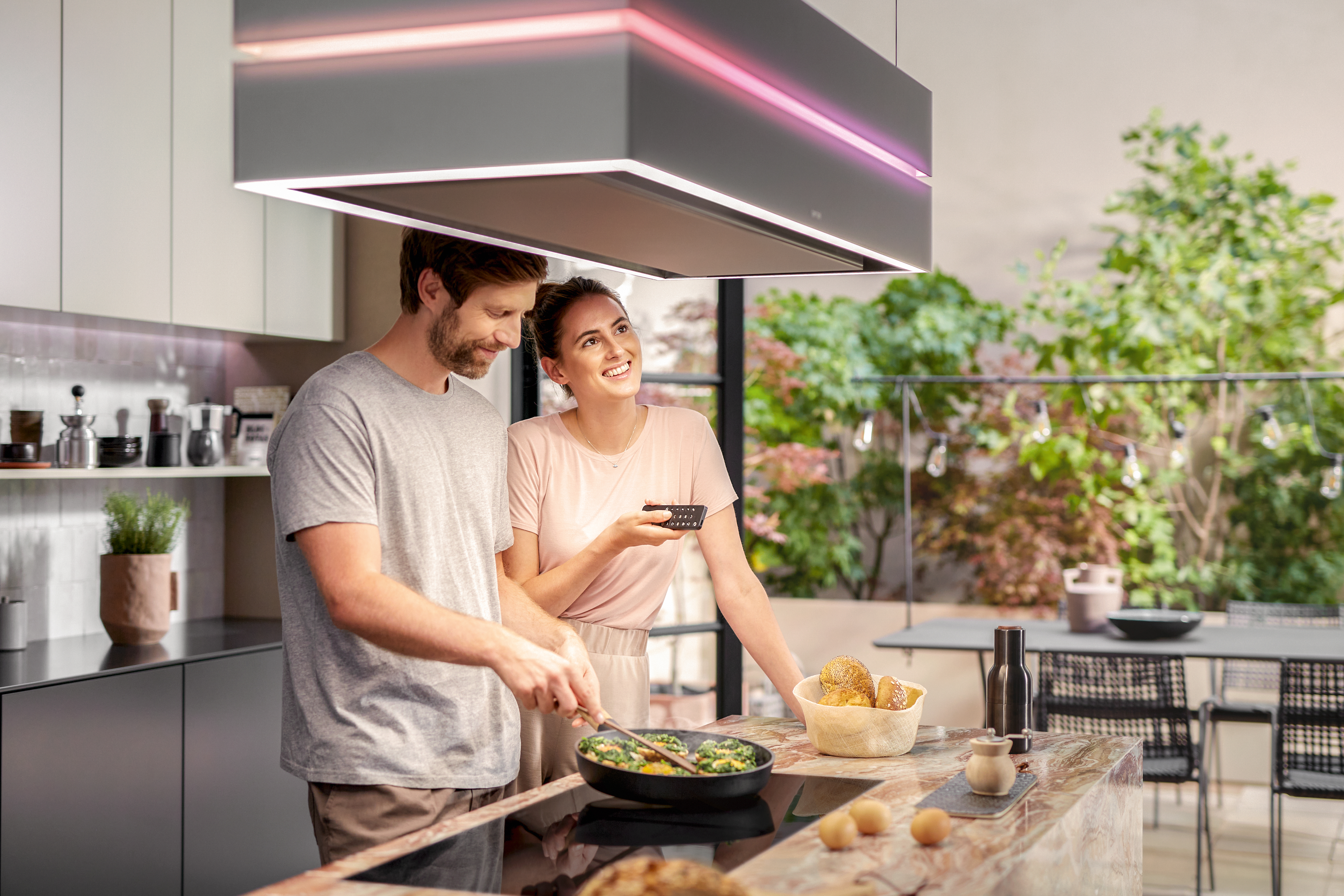 - Einstellbare Farbtemperatur und Dimmfunktion für Kochfeldbeleuchtung, Effektbeleuchtung und Uplight