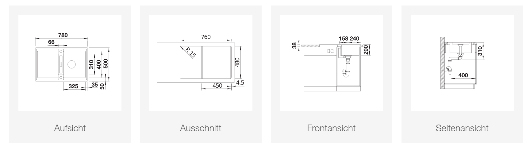 obenliegender Einbau ab 45 cm Unterschrank