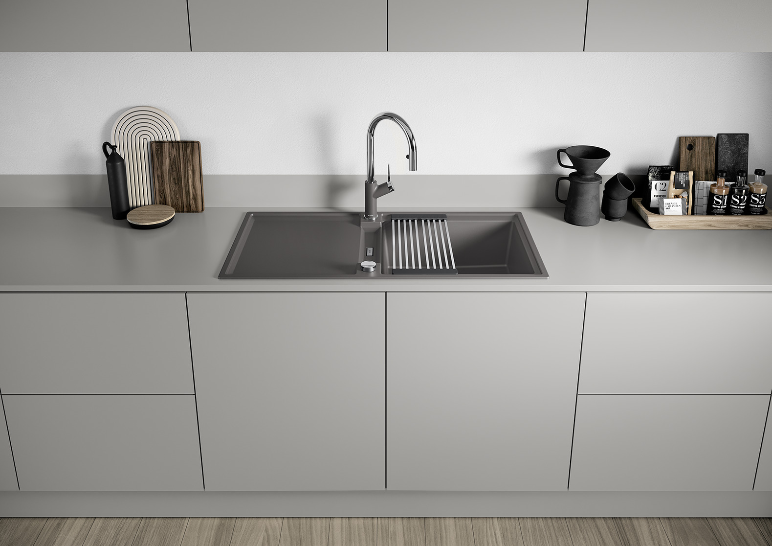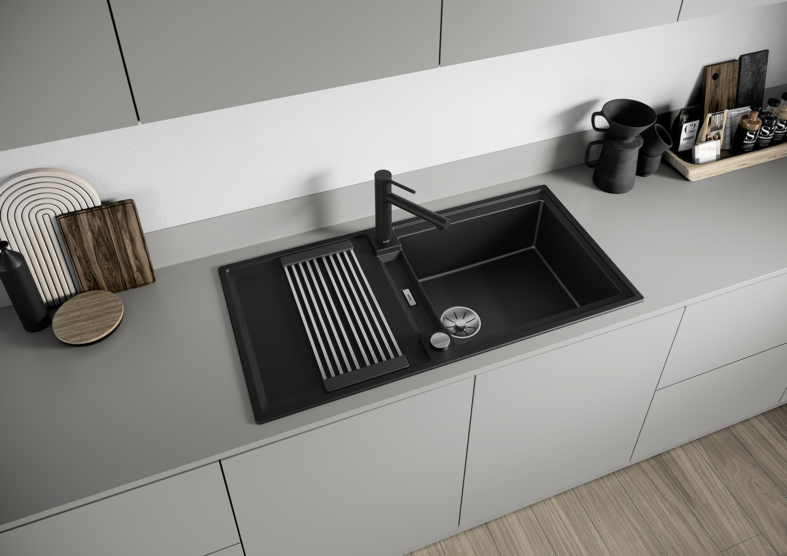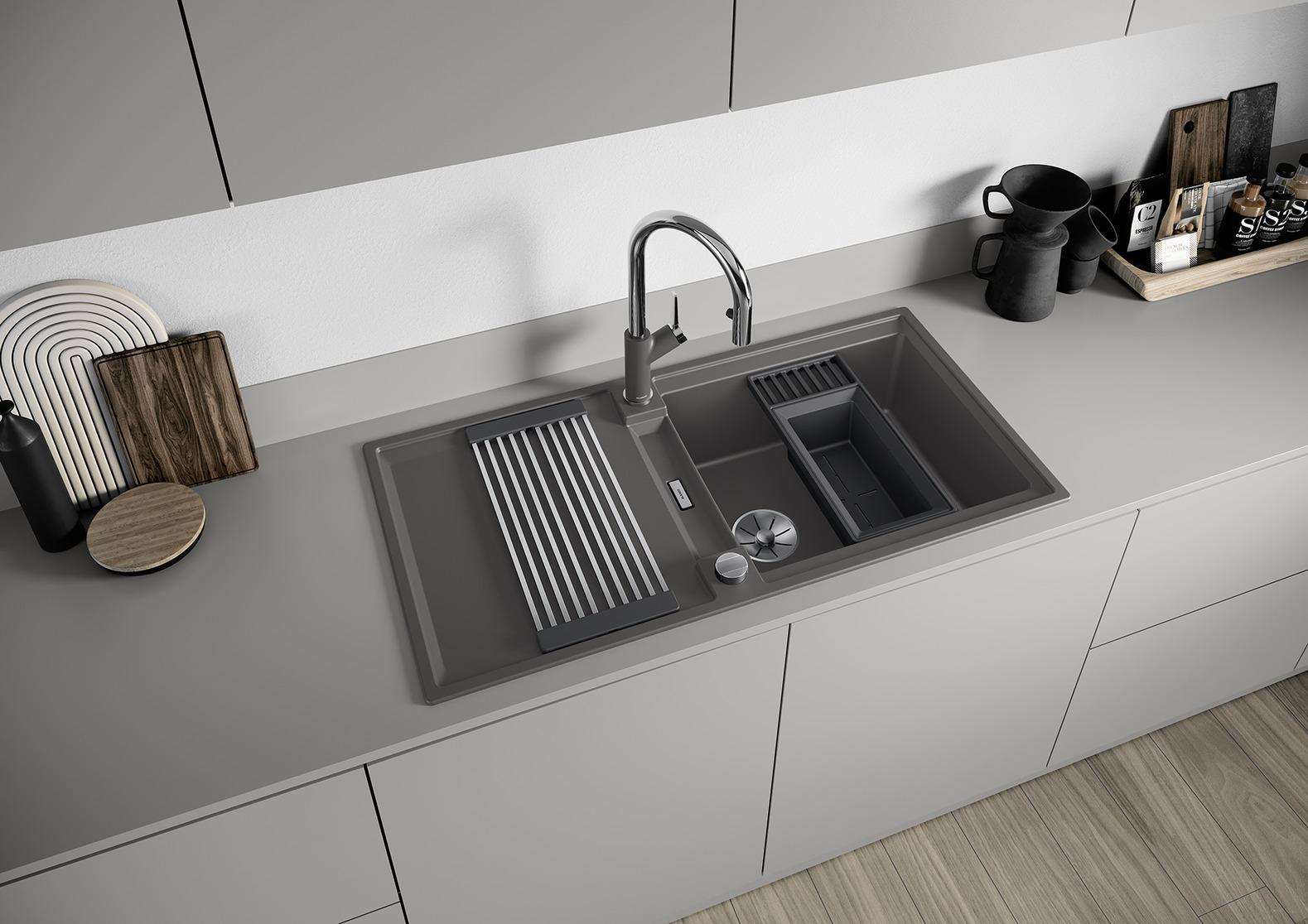 - Moderne Spüle in schönen Silgranit-Farben mit erhöhter Funktionalität