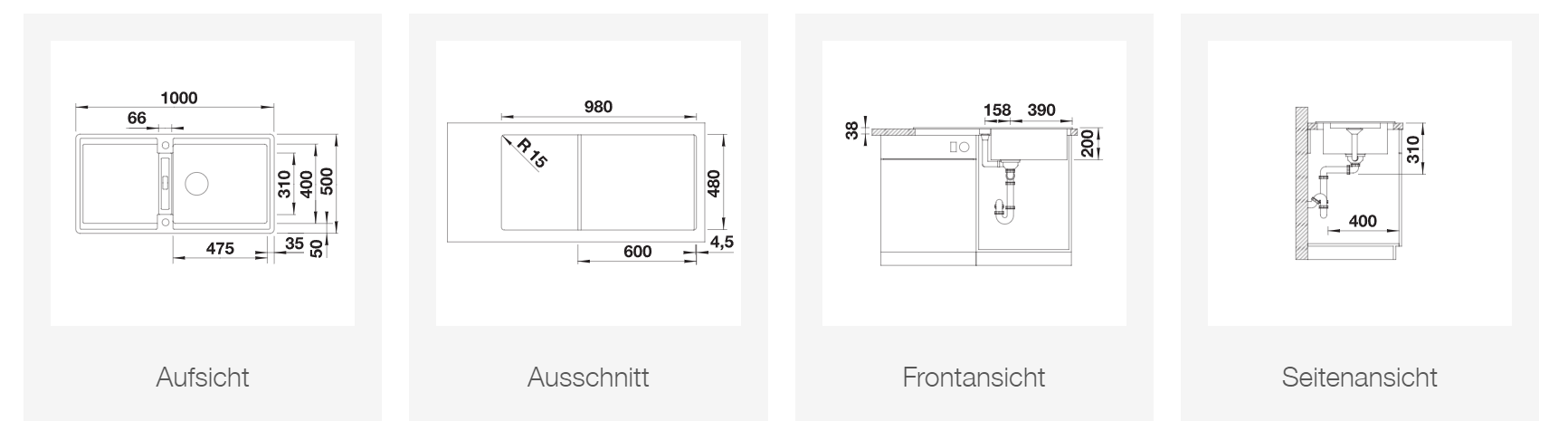 obenliegender Einbau ab 60 cm Unterschrank