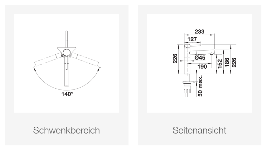 140° schwenkbarer Auslauf für größeren Aktionsradius