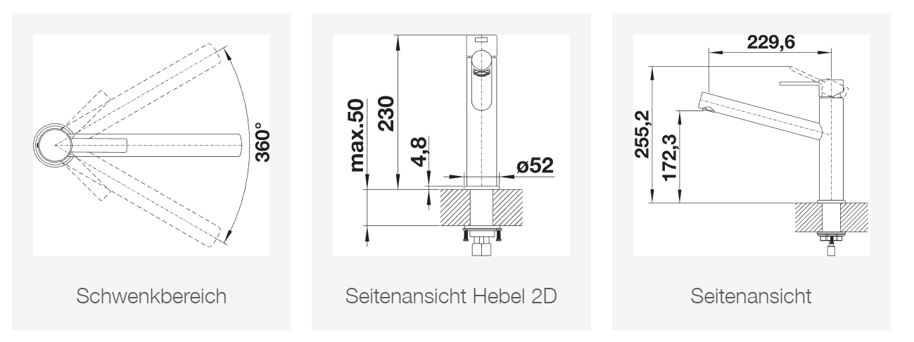 - Hahnlochbohrung mit Ø 35 mm erforderlich