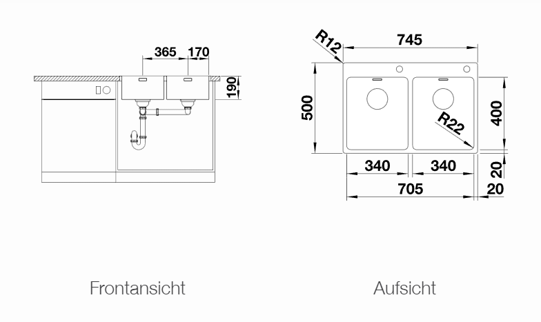 Beckentiefe: 190/190 mm