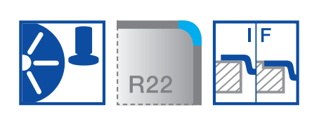 - Moderne Gesamtanmutung durch harmonisches Zusammenspiel von Eck- und Bodenradien und der Seidenglanz-Oberfläche
