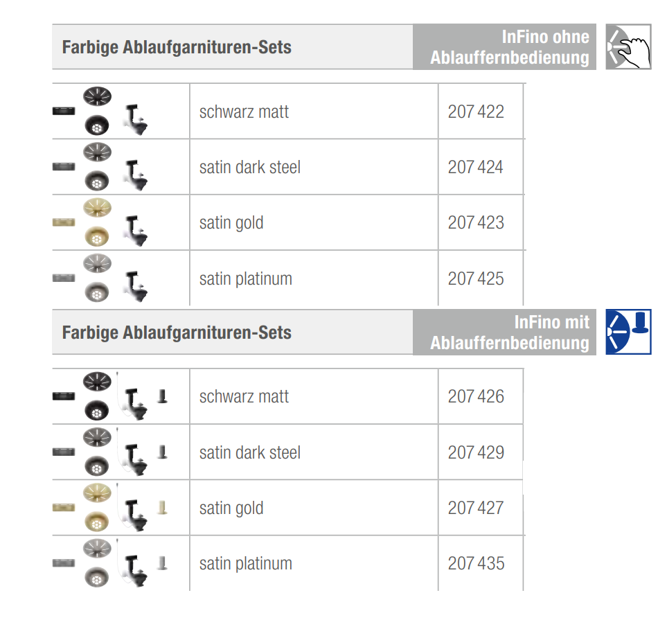 - Ablaufgarniturset inklusive InFino und Überlauf zur Nachrüstung von Spülen und Becken