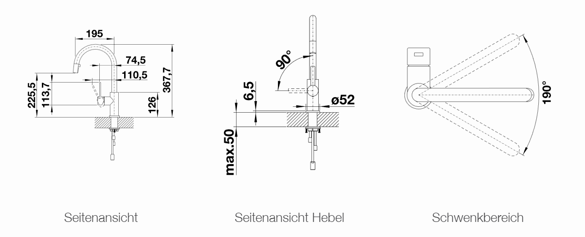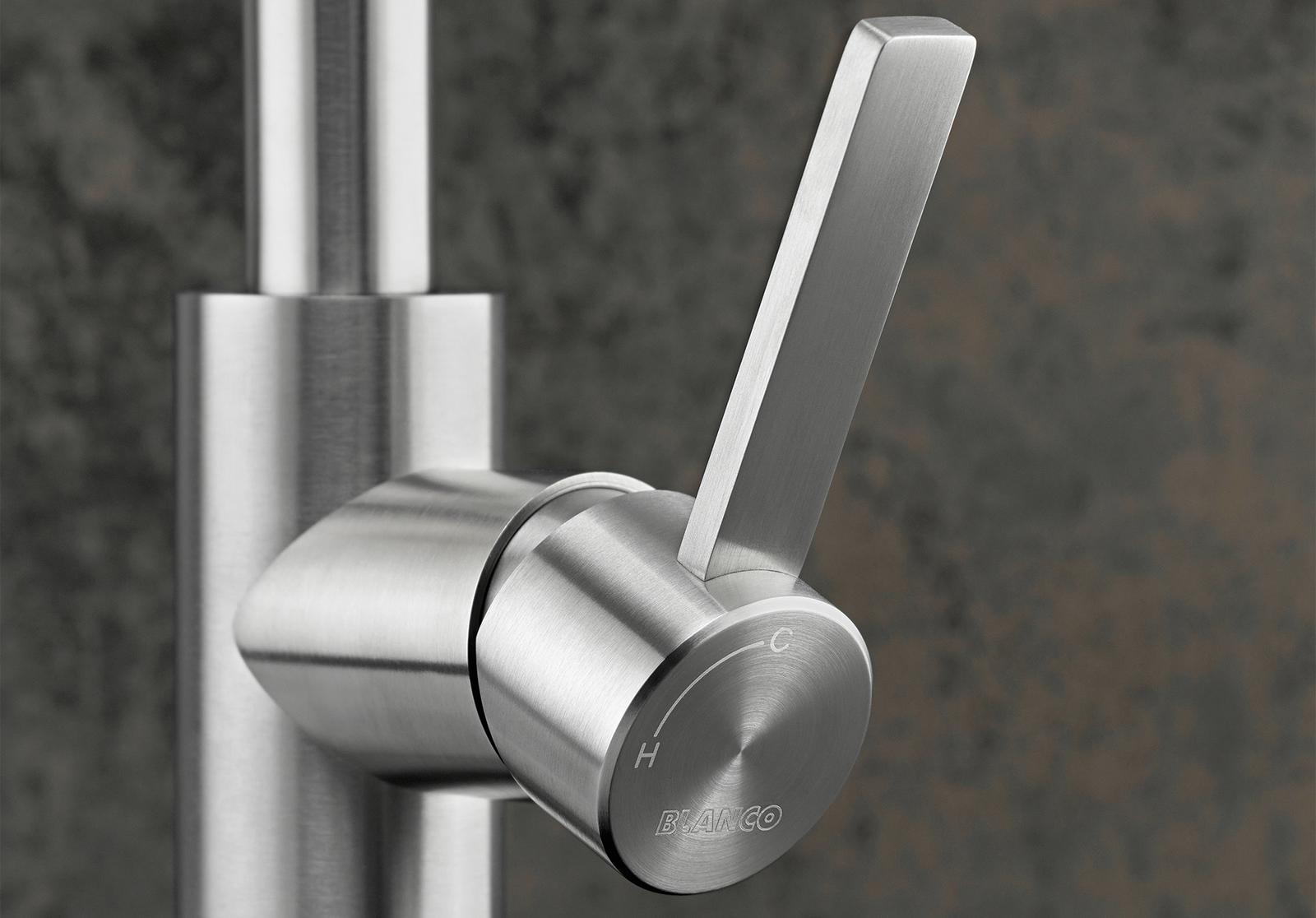 - Größere Gestaltungsfreiheit bei Einbau vor Rückwand durch Bedienhebel mit senkrechter Nullstellung