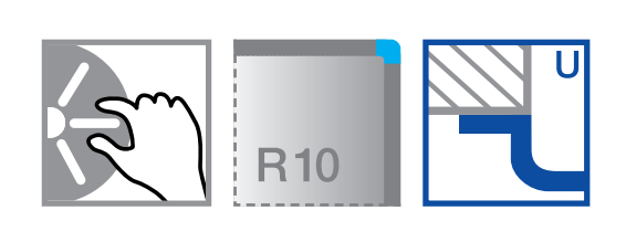 - Elegant-pures Design mit prägnanten Eckradien von 10 mm