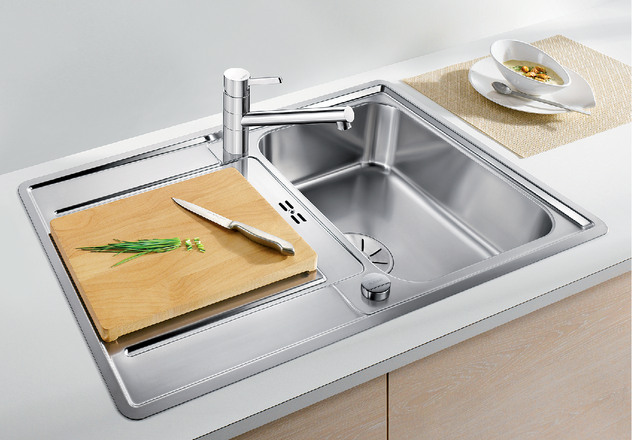 - Ausgewogene, zeitlose Optik, Hauptbecken mit klarer Kontur und modernem Siebkörbchen