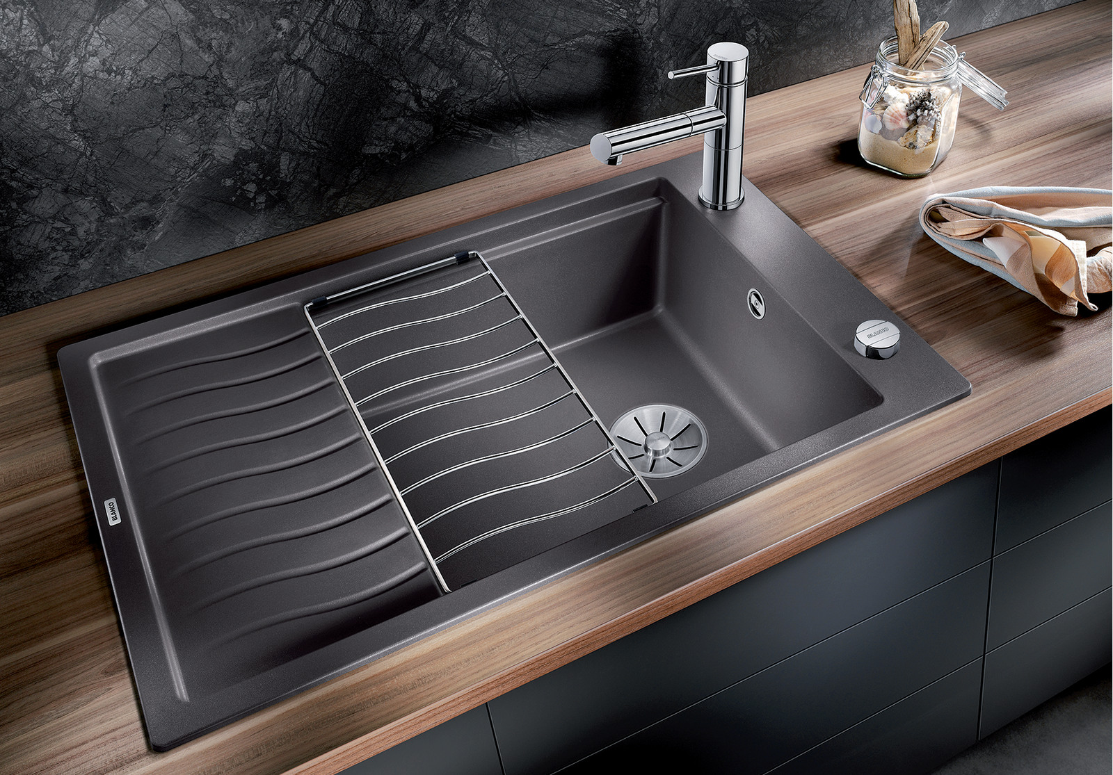 - Modernes, wellenförmiges Design von Spüle und Zubehör, perfekt aufeinander abgestimmt