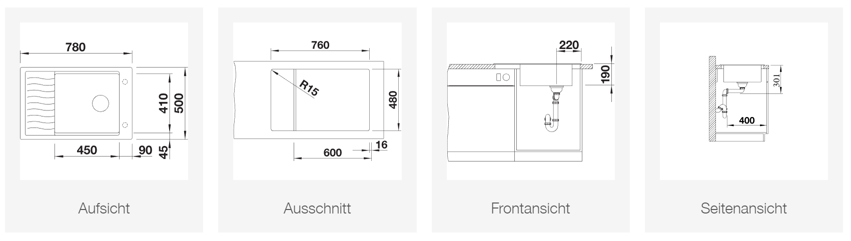- Kompakte Einbeckenspüle, auch für kleine Küchen geeignet