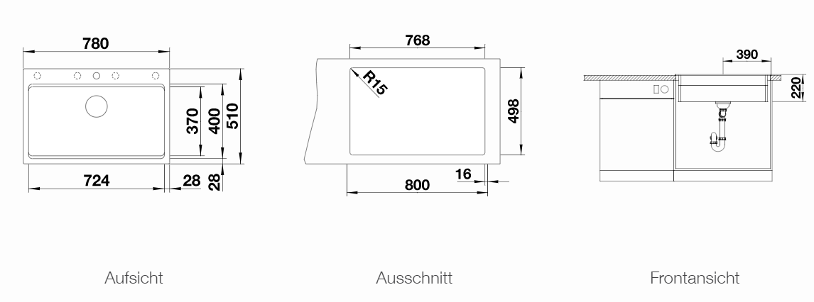 - Zum Einbau von oben, mit elegantem, flachem Rand und durchgängiger großzügiger Batteriebank