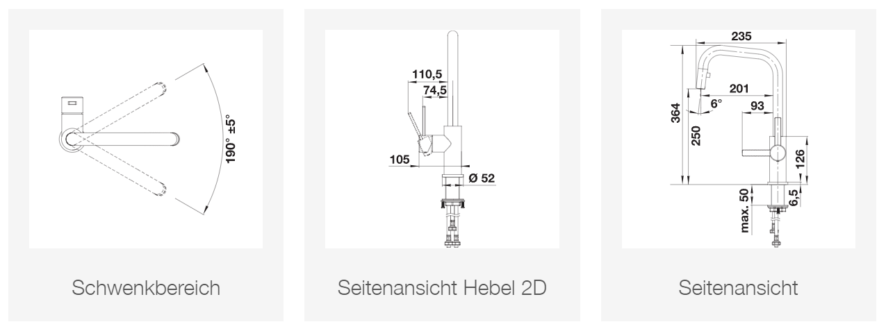 - Auslauf 190° schwenkbar