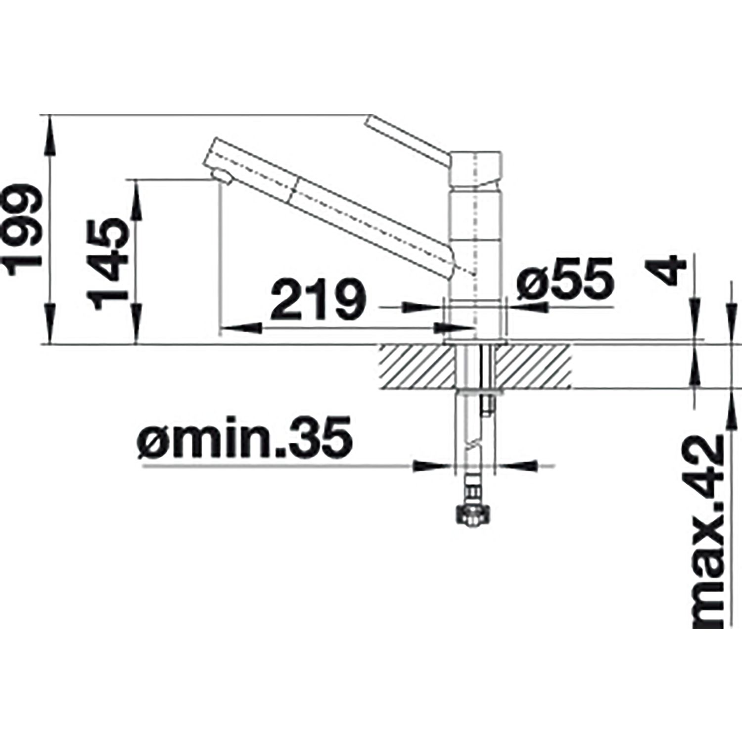 - Abstand Auslauf: 219 mm