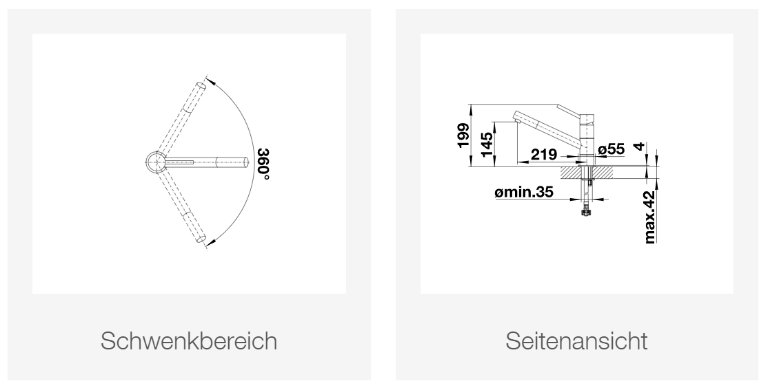 - Erweiterter Aktionsradius durch 360° schwenkbaren Auslauf