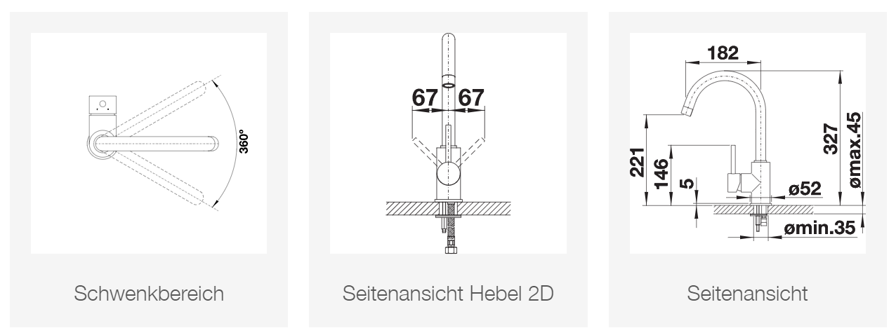 - Hahnlochbohrung mit Ø 35 mm erforderlich