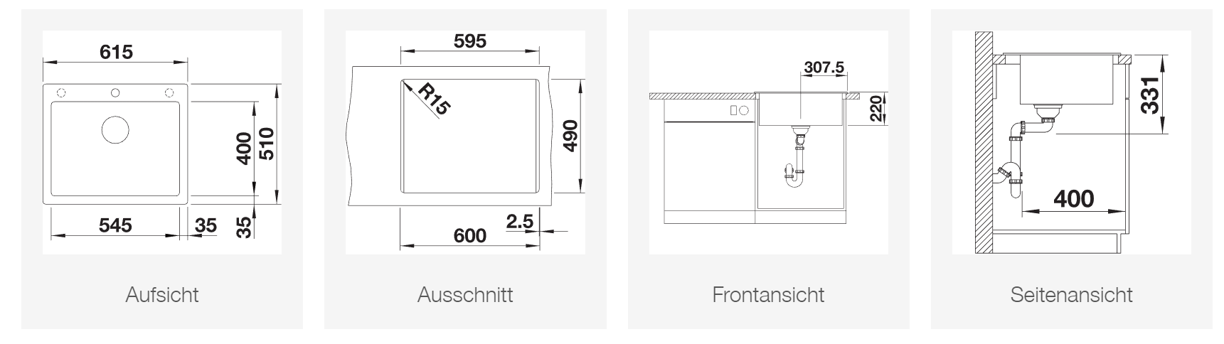 - Reinigungsfreundlicher, fließender Übergang vom Spülenrand zur Batteriebank