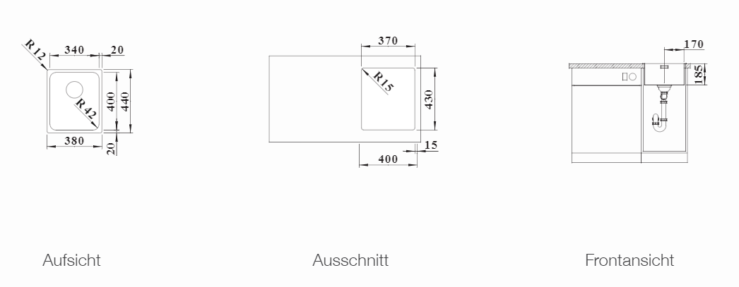 380 x 440 mm - Einbau ab 40 cm Unterschrank