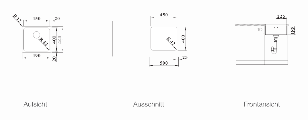 490 x 440 mm - Unterbau ab 50 cm Unterschrank