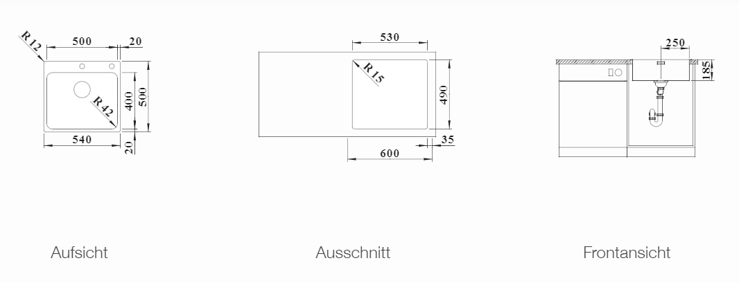 540 x 500 mm - Einbau ab 60 cm Unterschrank