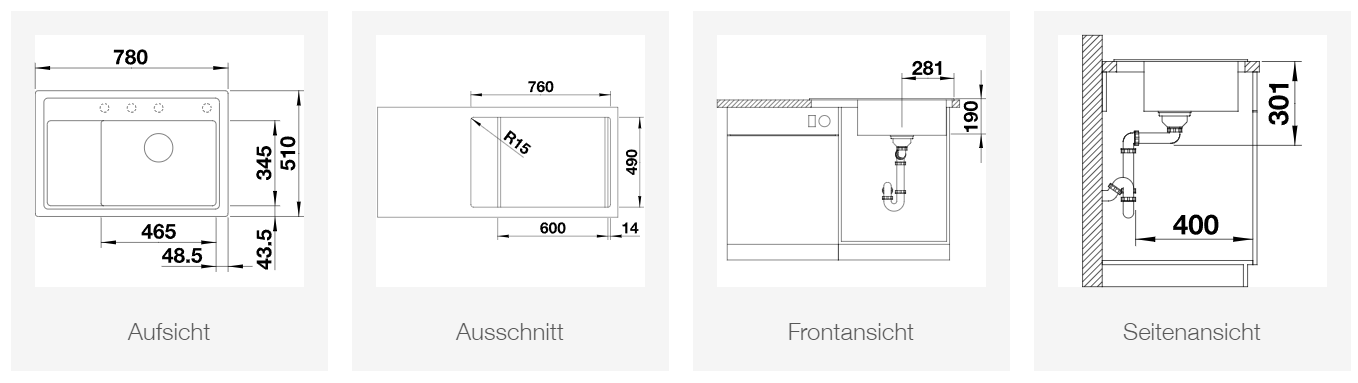 - Hochwertige Ausstattung mit Überlauf C-overflow und Ablaufsystem BLANCO InFino elegant integriert und besonders pflegeleicht
