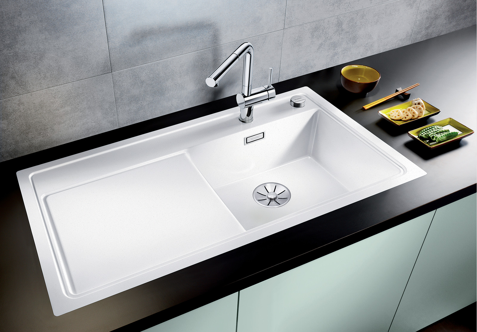 - Besonders großes Becken, geräumige Abtropffläche
