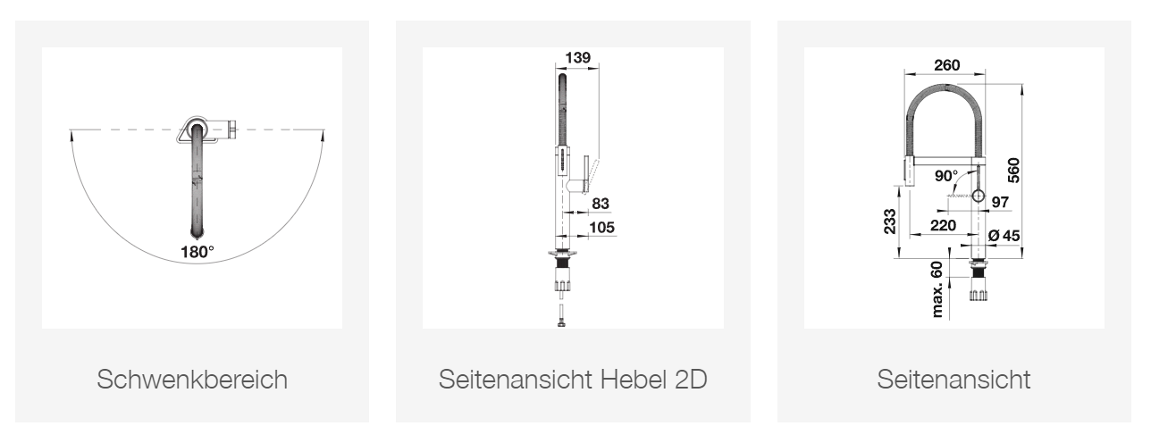 180° schwenkbarer Auslauf für größeren Aktionsradius