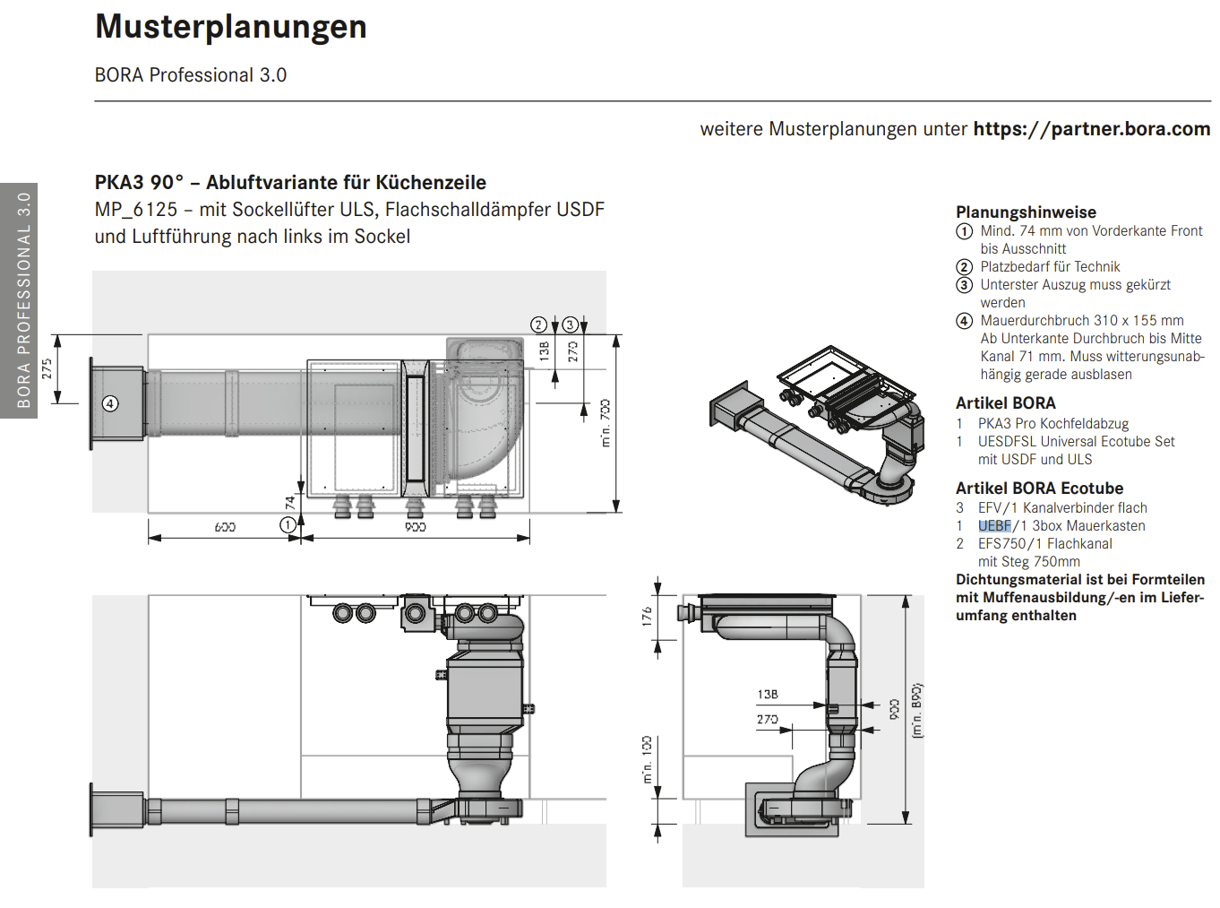 ? BORA 3box UEBF ? 6 x Montagekeile aus EPS ? Montageanleitung ? 1 x Dichtung flach EFD ? 1 x Ecotube Flachkanal mit Steg 375mm EFS375