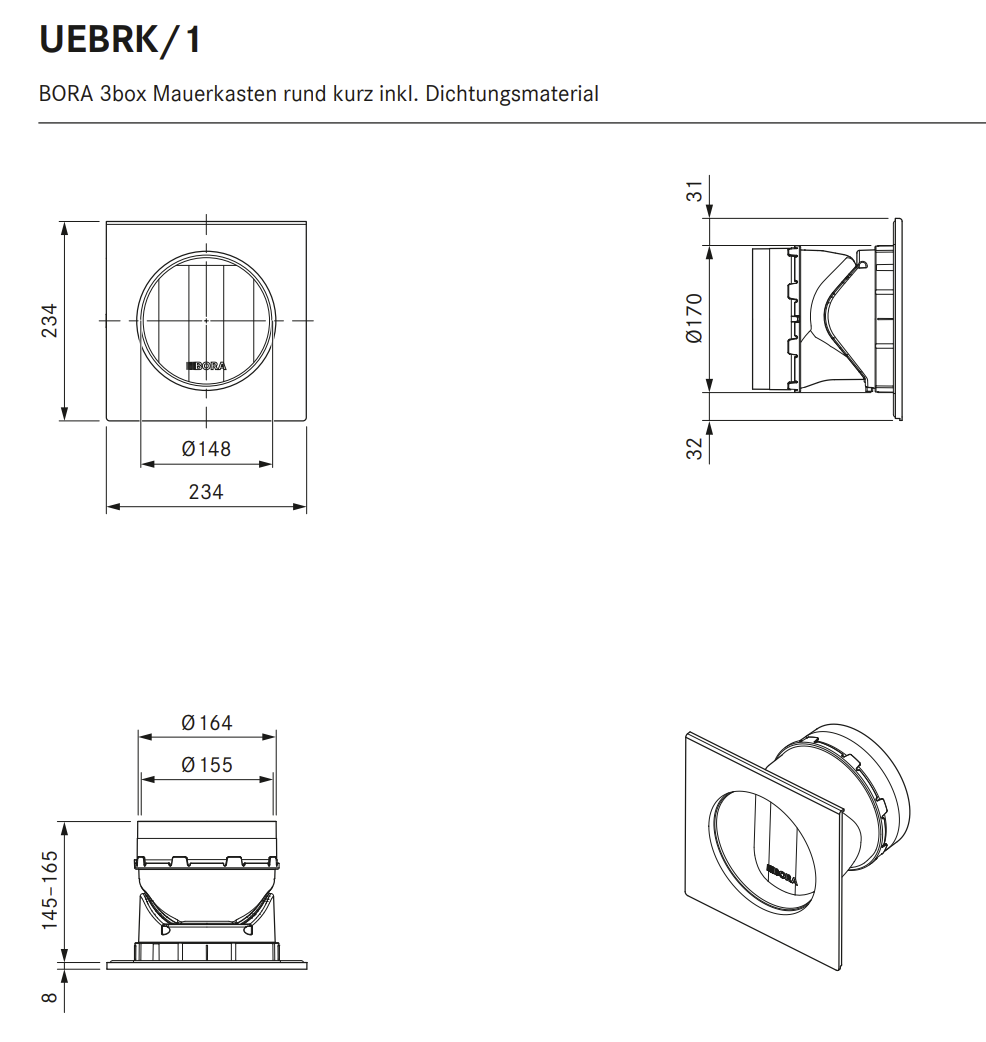 ? BORA 3box UEBRK ? Putzdeckel ? Montageanleitung ? 1 x Dichtung rund ERD