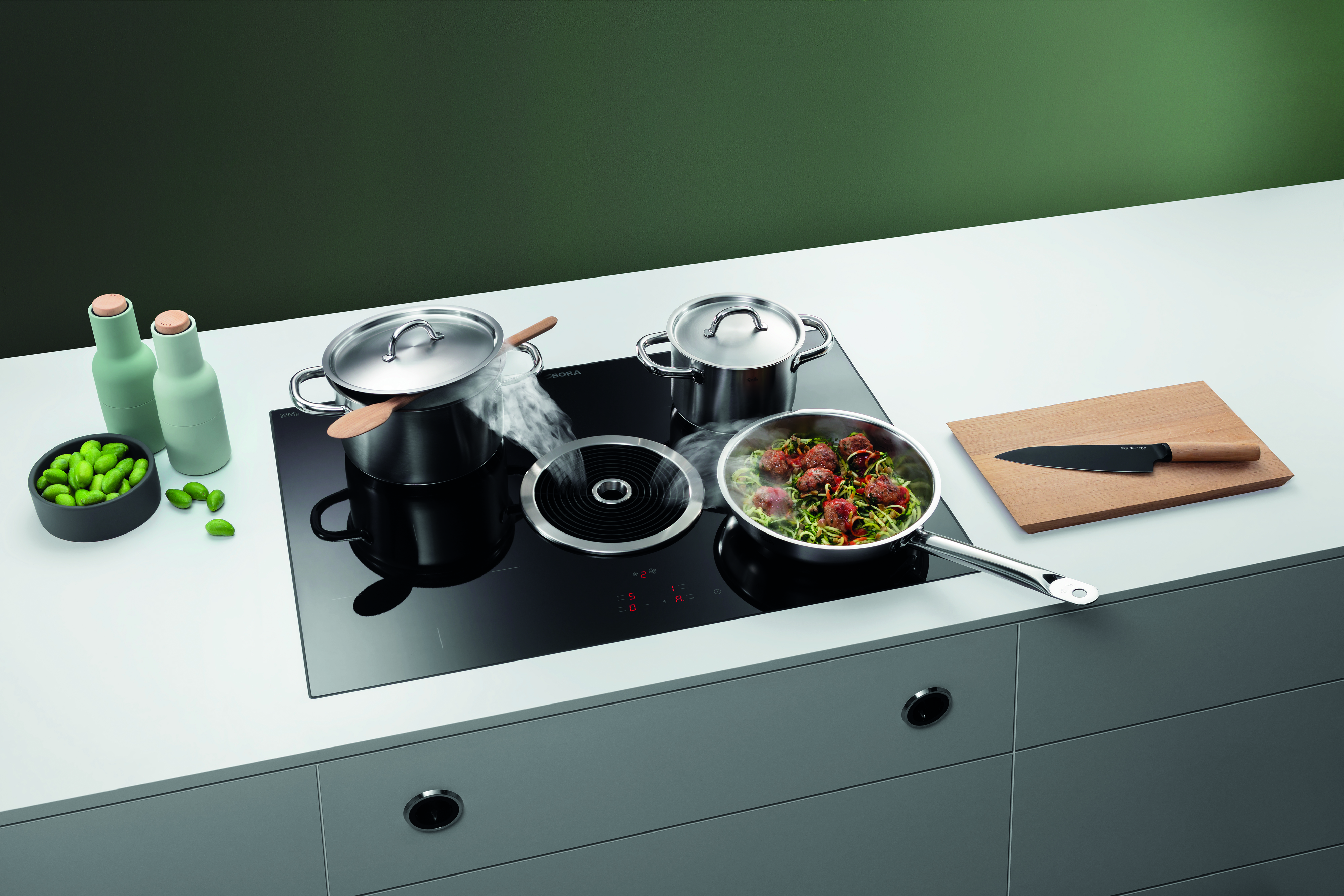 ? niedrigste Lautstärke ? besonders schnelles Ankochen ? leichte Reinigung ? echter Edelstahl-Fettfilter ? übergroße Kochfläche 4 24 ? kompakte Größe ? freie Kochfeldauswahl ? Ankochautomatik ? Kindersicherung ? Timer Kochzonen